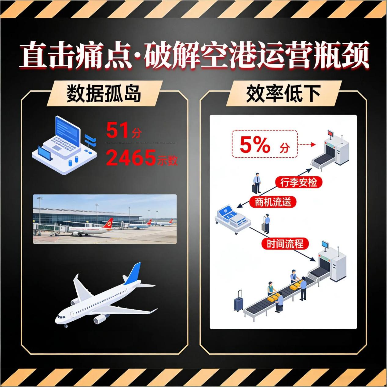 機(jī)場(chǎng)業(yè)務(wù)涵蓋航班生產(chǎn)、旅客服務(wù)、安全運(yùn)營(yíng)三大核心板塊,同時(shí)還包括物流、酒店、商業(yè)等非航業(yè)務(wù),各板塊之間相對(duì)獨(dú)立,跑道資源調(diào)度、旅客全流程服務(wù)、設(shè)備穩(wěn)定運(yùn)營(yíng)、非航業(yè)務(wù)協(xié)同等方面缺乏一體化的管控手段,整體運(yùn)營(yíng)效率有待提升。